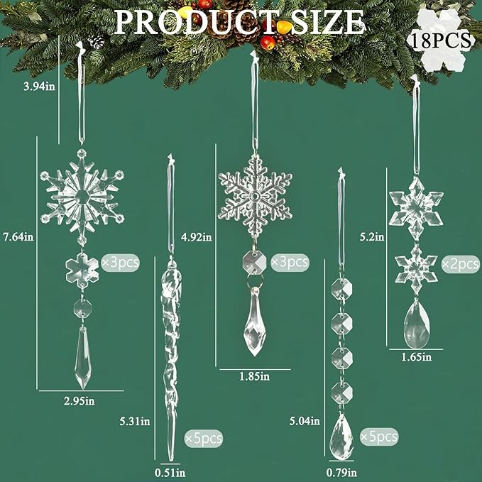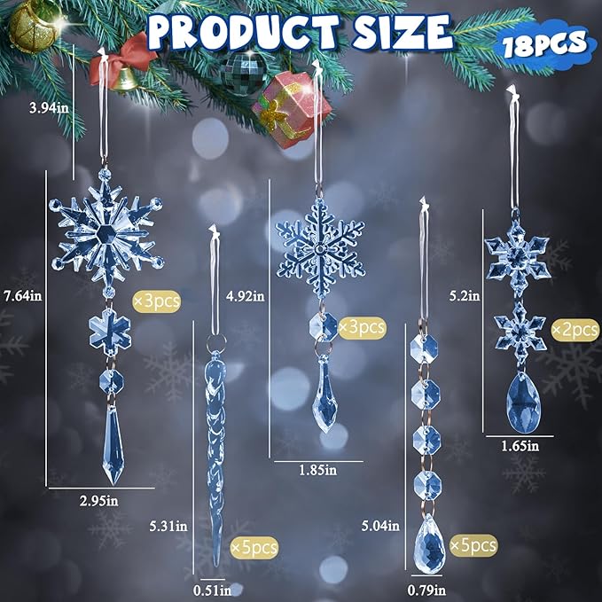 18Pcs Acrylic Snowflake Christmas Tree Ornament