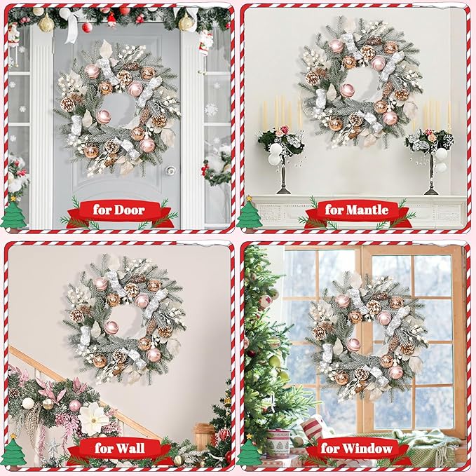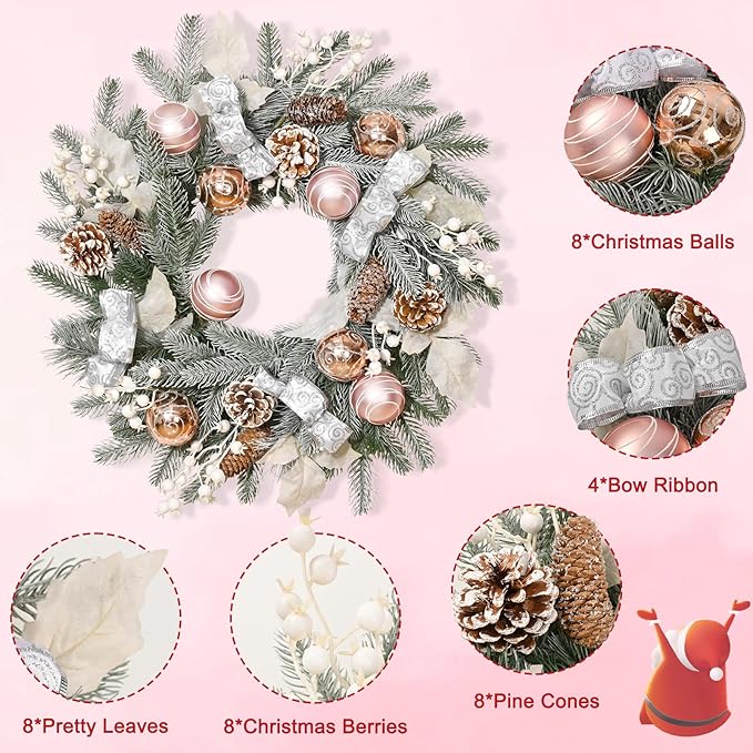 Christmas Light Wreath with Pink Glitter Ornaments
