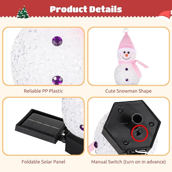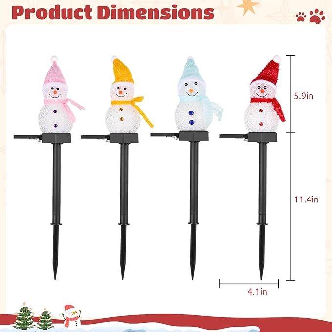 4pcs Christmas Outdoor Snowman Solar Garden Stake Light
