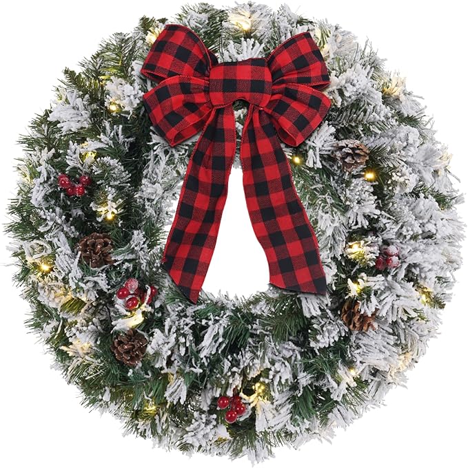 Snow Flocked LED Christmas Wreath